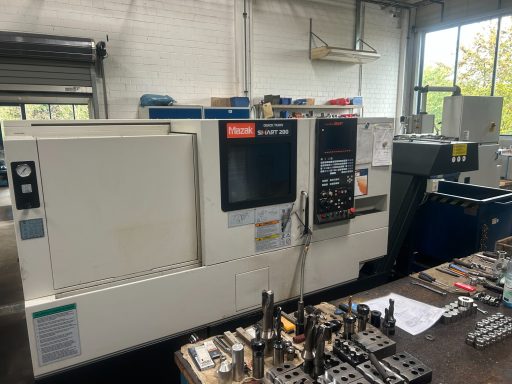 ● 1x Mazak Smartturn 200: Eine hochpräzise CNC-Drehmaschine mit einem Drehdurchmesser von 350 mm und einer Spitzenlänge von 500 mm.